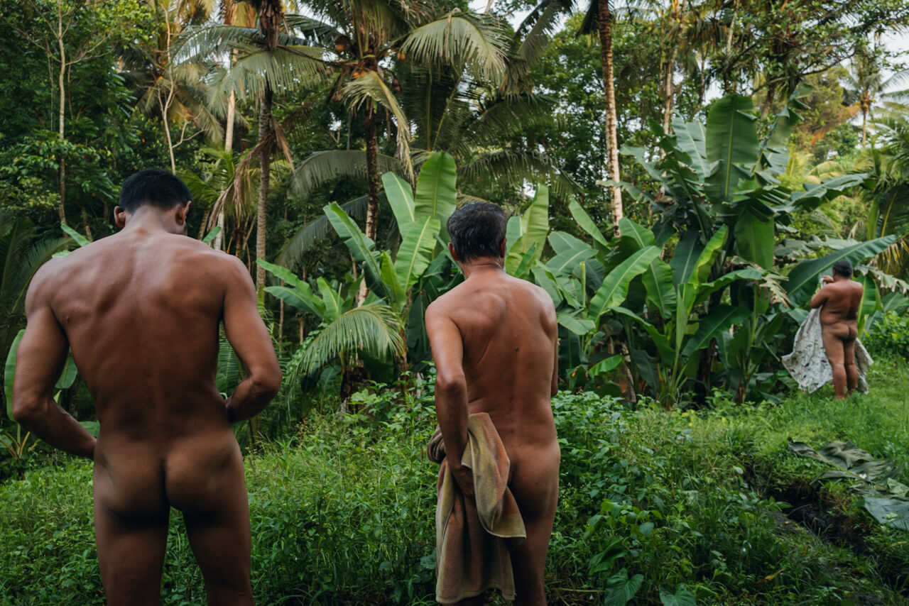 Bali, Indonesia – men shower in the jungle, where spring water is believed sacred.